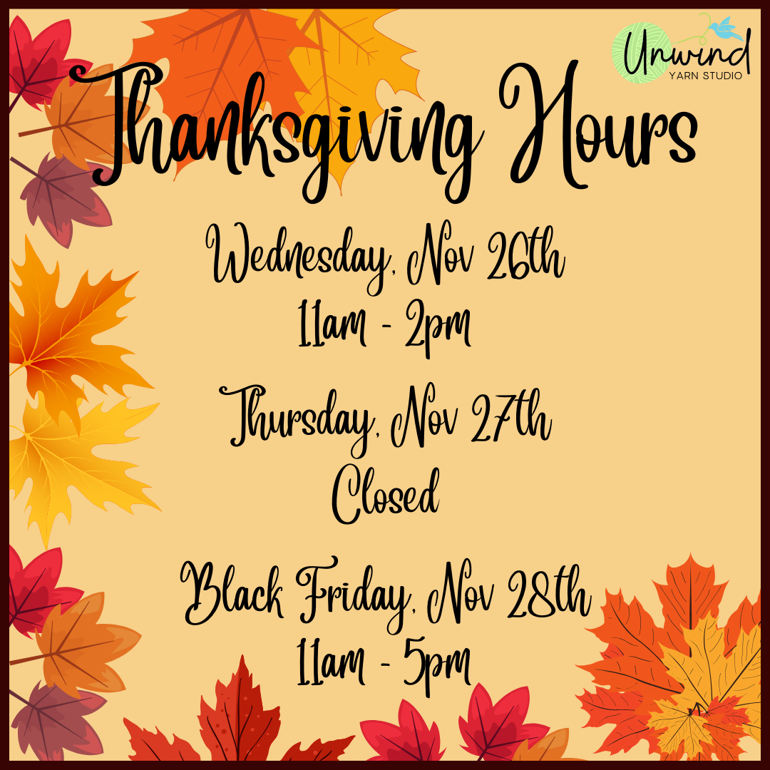 Come see us Wednesday until 2:00p, Friday for multiple Black Friday in-store sales(!), or a gift with purchase on Small Business Saturday!