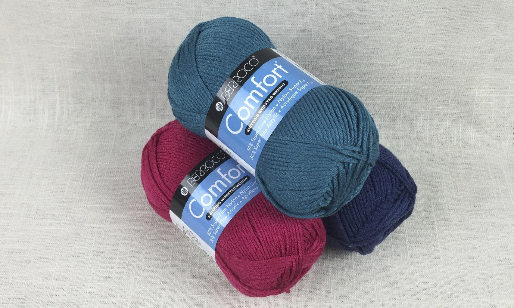 Berroco Comfort is a wonderfully soft blend of super fine nylon and acrylic. This washable yarn is soft to the touch and soft against the wearer’s skin, making it perfect for babies and children’s items as well as those looking for a non-wool alternative. It comes in a broad palette of baby colors as well as more sophisticated colors. Great for blankets, sweaters, hats.