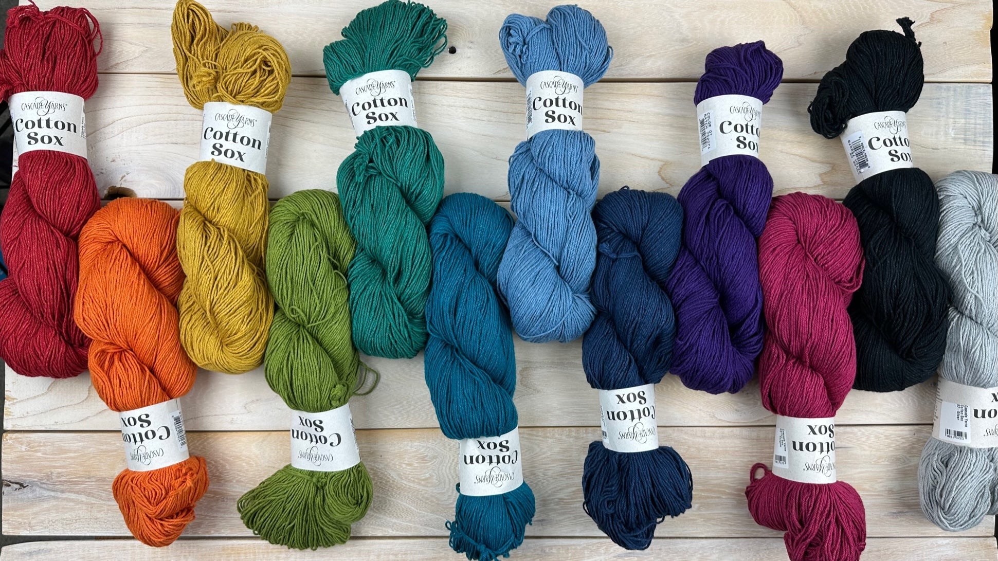 Cotton Sox is a beautiful blend of Cotton and Nylon, that is perfect for summer tees, accessories and your next sock project.